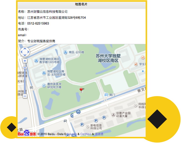 蘇州財(cái)貓?jiān)菩畔⒖萍加邢薰臼且患覍I(yè)從事信息技術(shù)開發(fā)與服務(wù)的科技企業(yè),財(cái)貓?jiān)剖瞧淦煜碌幕ヂ?lián)網(wǎng)財(cái)稅服務(wù)品牌, 蘇州南開之星會計(jì)服務(wù)有限公司則是其旗下專業(yè)交付財(cái)稅服務(wù)的全資子公司,是經(jīng)蘇州市財(cái)政局批準(zhǔn)成立、蘇州工業(yè)園區(qū)工商行政管理局登記注冊的正規(guī)專業(yè)財(cái)稅服務(wù)機(jī)構(gòu)。